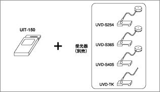 ●只要交換受光部。就能進(jìn)行3個(gè)波長(zhǎng)域(中心波長(zhǎng)254nm,365nm,405nm)和溫度的測(cè)定。