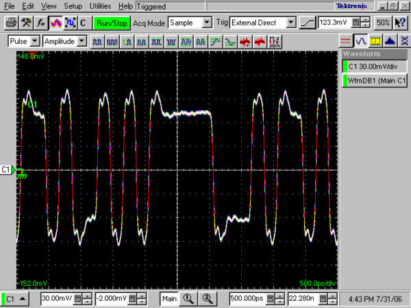 為存儲(chǔ)設(shè)備測(cè)試生成信號(hào)對(duì)存儲(chǔ)設(shè)備的容量要求不斷提高,要求為磁性及光學(xué)存儲(chǔ)設(shè)備開發(fā)新的速度更快的讀寫策略。人們正考慮在光盤存儲(chǔ)中采用多電平數(shù)據(jù)編碼,來(lái)有效提高存儲(chǔ)容量。 由于能夠準(zhǔn)確地復(fù)現(xiàn)讀寫信號(hào),AWG7000B 系列使得用戶能夠設(shè)計(jì)、開發(fā)和測(cè)試最新的存儲(chǔ)設(shè)備。擁有高達(dá)24GS/s的采樣率及能以100 ps的時(shí)鐘定時(shí)分辨率生成最多6 個(gè)信號(hào)(2 個(gè)模擬信號(hào)加4 個(gè)標(biāo)記信號(hào)),AWG7000B 系列代表著業(yè)內(nèi)的最新基準(zhǔn)。參見圖4。