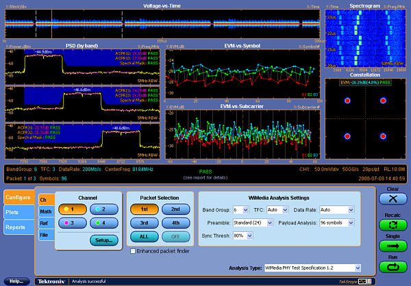 擴(kuò)展波形生成功能的其它應(yīng)用軟件工具SerialXpress® (SDX100)SerialXpress可以創(chuàng)建所需的波形,對(duì)高速串行數(shù)據(jù)接收機(jī)進(jìn)行全面、可重復(fù)的設(shè)計(jì)驗(yàn)證、余量檢定和一致性測(cè)試。它大大簡(jiǎn)化了信號(hào)創(chuàng)建和抖動(dòng)仿真工作,降低了整體開發(fā)和測(cè)試時(shí)間。除支持生成抖動(dòng)(隨機(jī)抖動(dòng)、周期性抖動(dòng)(正弦曲線)、ISI和DCD)外,SerialXpress還支持SSC、預(yù)加重和增加噪聲。用戶可以同時(shí)創(chuàng)建各種損傷組合,測(cè)試接收機(jī)極限。 SSC 還支持自定義配置文件和df/dt,測(cè)試PLL設(shè)計(jì)極限。編程接口可以簡(jiǎn)便地把SerialXpress 集成到測(cè)試自動(dòng)化系統(tǒng)中。 RFXpress® (RFX100)RFXpress®是以數(shù)字方式合成調(diào)制基帶、IF和RF信號(hào)的軟件包。它把IQ、IF和RF信號(hào)生成功能帶到新的水平,全面利用任意波形發(fā)生器(AWG)的寬帶信號(hào)生成功能。該軟件支持廣泛的調(diào)制及符號(hào)映射功能,允許用戶定義各種獨(dú)特的調(diào)制和跳頻方案。 RFXpress 校準(zhǔn)功能使信號(hào)預(yù)失真,在AWG外面提供平坦的頻響和線性相位響應(yīng)。此外,您還可以校準(zhǔn)fs/2和fs之間的映像,從而為采樣不足的信號(hào)提供平坦的響應(yīng)。 RFXpress創(chuàng)建UWB-WiMedia信號(hào)的軟件模塊(參見圖4)能夠以數(shù)字方式合成和生成UWB 頻譜頻段組1 和2 中的RF 信號(hào)。根據(jù)最新的WiMedia 規(guī)范,UWB 信號(hào)將在1.5 GHz調(diào)制帶寬上實(shí)時(shí)跳頻,包括復(fù)雜的前置碼同步序列,可以同時(shí)在跳頻(TFI)和非跳頻(FFI)模式下運(yùn)行。可以通過各種方式生成全部6 個(gè)頻段組(BG1- BG6),包括IQ、IF 或直接RF 生成中的跳頻。一致性測(cè)試模式可以生成RFXpress創(chuàng)建雷達(dá)信號(hào)的軟件模塊為您創(chuàng)建脈沖式雷達(dá)波形提供了最大的靈活性。您可以從一個(gè)脈沖到脈沖串、再到脈滿足WiMedia 規(guī)范的信號(hào),自定義模式則可以在信號(hào)中增加復(fù)雜的調(diào)節(jié)內(nèi)容,進(jìn)行極限和余量測(cè)試。 沖組建立自己的雷達(dá)脈沖套件。它支持各種調(diào)制方案,包括LFM、Barker 和多相位編碼、用戶自定義編碼、階躍FM、非線性FM、用戶自定義FM和自定義調(diào)制。它還可以生成帶有可變PRI 的脈沖串來(lái)解析多普勒效應(yīng)及用于電子對(duì)抗的(ECCM)跳頻信號(hào)和脈沖到脈沖幅度變化來(lái)模擬旋轉(zhuǎn)(Swerling)目標(biāo)模型。 RFXpress 和SerialXpress 都是強(qiáng)大而又簡(jiǎn)便易用的軟件包,分別為任意波形發(fā)生器(AWG)合成高速串行數(shù)據(jù)信號(hào)和RF信號(hào)。它可以作為AWG7000B 系列任意波形發(fā)生器的內(nèi)置部分運(yùn)行,也可以從外部PC 上運(yùn)行。 儀器保證:我們的大多數(shù)設(shè)備在裝運(yùn)之前均經(jīng)過嚴(yán)格的質(zhì)量檢測(cè)與校驗(yàn)。也可申請(qǐng)國(guó)家計(jì)量證書。 |