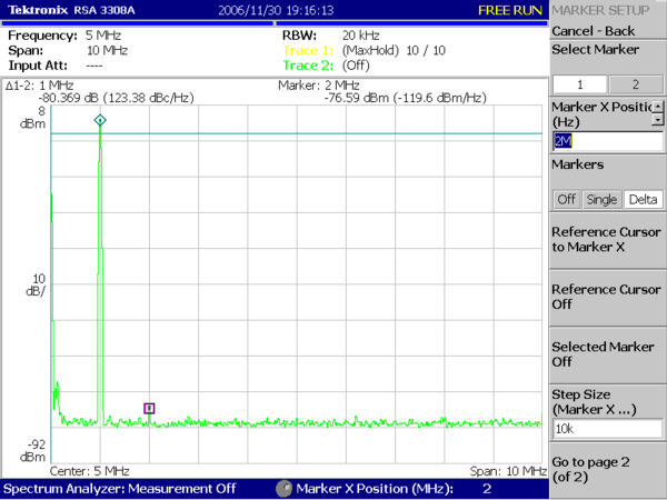 AWG5000B 系列采用14 位垂直分辨率和完善的設(shè)計(jì),提供了充足的信號(hào)動(dòng)態(tài)范圍和純度。對(duì)1 MHz信號(hào),其SFDR是80 dBc;對(duì)10 MHz信號(hào),其SFDR是64dBc。