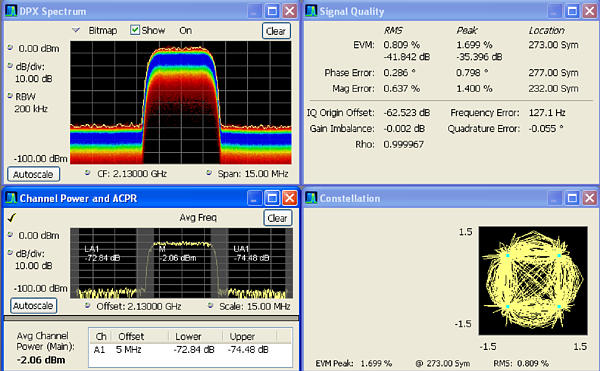 W-CDMA, HSUPA. HSDPA, GSM/EDGE, CDMA2000 1x, CDMA2000 1xEV-DO, RFID, 相噪, 抖動, IEEE 802.11 a/b/g/n WLAN, IEEE 802.15.4 OQPSK (Zigbee), 音頻分析 |