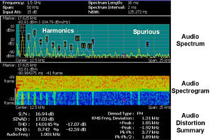 - 使用實時頻譜圖及諧波和雜散信號圖 形顯示,對基帶、AM 和FM 進(jìn)行音頻 失真分析。各種低通濾波器、高通濾 波器、帶通濾波器和去加重設(shè)置可供 選擇