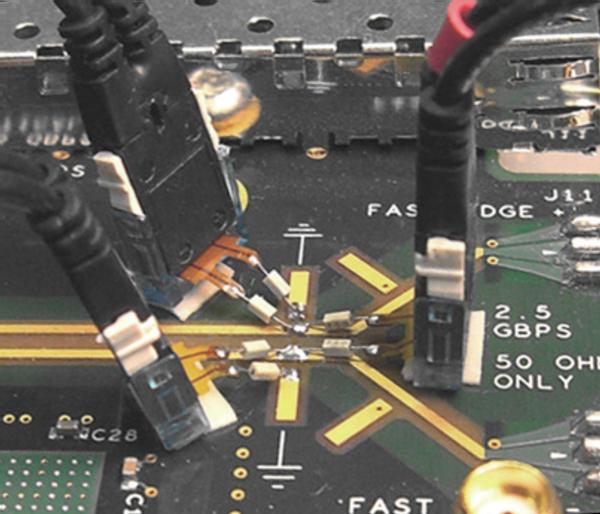 通過長距離焊接前端,現(xiàn)在可以更簡便、更迅速地在電路板上及在電路板之間執(zhí)行測量。用戶只需拔下前端(P75TLRST),然后插上另一個(gè)前端附件,就可以簡便地更換這些前端附件。 選配的P75PDPM(精密差分探測模塊)滿足了手持式和夾具探測需求。其小型精密錐形前端、探針可變關(guān)節(jié)桿及迅速調(diào)節(jié)可變前端間隔,為適應(yīng)30 mils-180mils 的不同尺寸的通路和其它測試點(diǎn)提供了所需的靈活性。 通過這些精密連接工具,可以接入各種器件上的多個(gè)信號(hào),如方便的測試連接盤及接入困難的高密度電路。 信號(hào)保真度您可以對測量的信號(hào)保真度樹立信心。泰克新型差分架構(gòu)與IBM 硅鍺技術(shù)杰出的電氣性能相結(jié)合,為滿足當(dāng)前及未來的行業(yè)需求提供了所需的帶寬和保真度。 新型P7500 系列差分探頭架構(gòu)提供了: