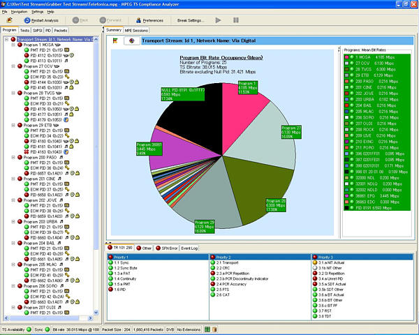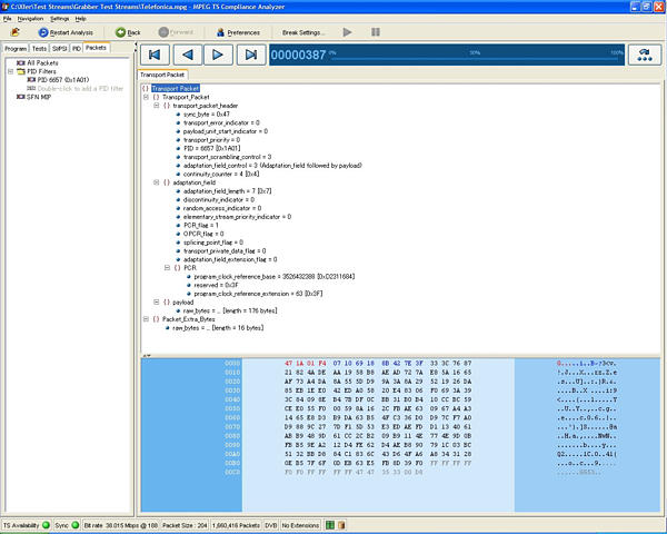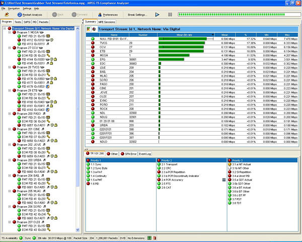 所有的MTS4SA 產(chǎn)品均按標(biāo)準(zhǔn)提供兩個(gè) 直接碼流處理軟件包。利用TS 剪切器可 以重新確定傳送流的容量大小,同時(shí)使 用TS 編輯器可直接編輯傳送流(利用十 六進(jìn)制顯示和包頭解釋指南)。用戶(hù)可以 重新映射PID、重新計(jì)算PCR數(shù)值,人為 地引入經(jīng)過(guò)校正的PCR 不準(zhǔn)確度,服從 以下法則:高斯、隨機(jī)、正弦波等。