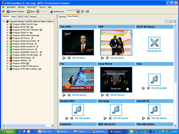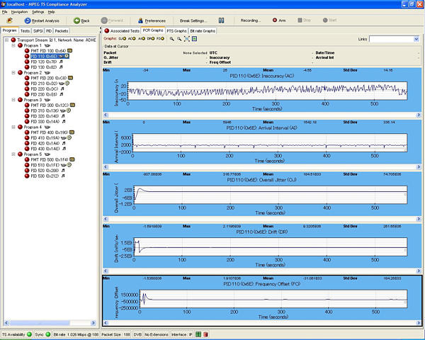 在MTS4SA的分析儀中,可以指示出攜帶 有MPEG TS業(yè)務(wù)的UDP話(huà)路,也可以選 擇UDP 話(huà)路以進(jìn)行分析和記錄。當(dāng)它通 過(guò)網(wǎng)絡(luò)接口卡接收到傳送流包時(shí),就會(huì) 給出時(shí)間標(biāo)記,從而進(jìn)行PCR 測(cè)量和給 出PCR 圖示。這些均可以在MTS4SA 系 列工具和用戶(hù)的個(gè)人電腦上進(jìn)行。