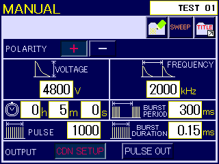 - 最大4.8KV的輸出電壓,最高2MHz的脈沖頻率,可進(jìn)行遠(yuǎn)超標(biāo)準(zhǔn)的試驗(yàn)。