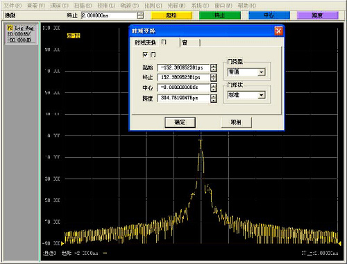 ● 軟件時域門功能 ? 系統(tǒng)軟件提供測量軌跡時頻域轉(zhuǎn)換與軟件時域門功能,用戶可依據(jù)被測目標與天線間的距離和被測目標物理尺寸等信息,依據(jù)軟件時域門設(shè)置對話框提示,合理選擇門中心、跨度等參數(shù),利用軟件數(shù)據(jù)處理方法實現(xiàn)干擾信號時域上的濾波抑制,提高RCS測量精度。 ![]()