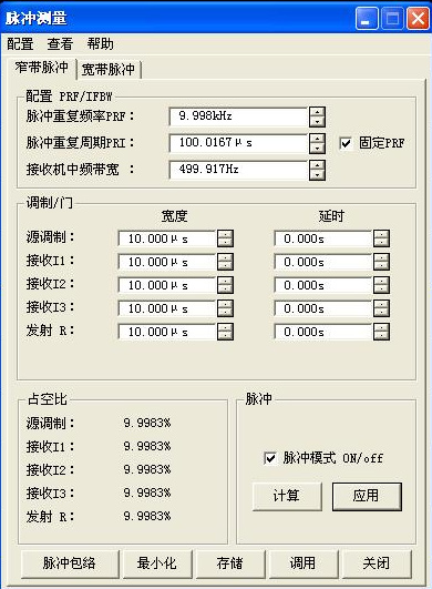 ● 硬件時域門功能(選件) ? 系統(tǒng)主機內(nèi)置脈沖調(diào)制器與4路脈沖信號發(fā)生器,結(jié)合中頻接收通路硬件脈沖門控電路與專用脈沖測量控制軟件,無需外配儀器,即可實現(xiàn)脈沖信號的發(fā)生與測量。與軟件時域門不同,用戶需依據(jù)被測目標與天線間的距離和被測目標物理尺寸等信息,在測量前完成源調(diào)制脈沖脈寬與占空比,接收機門控脈沖寬度與延遲等參數(shù)選擇。該功能利用不同距離回波在時域上的可分離性實現(xiàn)干擾信號與目標回波的硬件分離,可實現(xiàn)只在目標回波處進行數(shù)據(jù)處理,有利于提高RCS測量精度。 ![]()