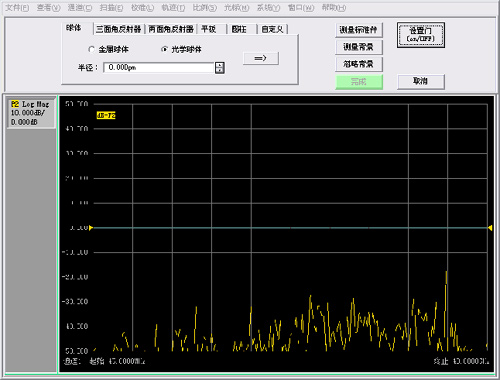 ● ? 測試曲線存儲與對比顯示 ? 系統(tǒng)軟件具有測量軌跡與數(shù)據(jù)存儲功能,可進行存儲數(shù)據(jù)與測量數(shù)據(jù)的加減乘除運算,并可在同一窗口顯示存儲軌跡與實時測量軌跡,實現(xiàn)同一測試條件下,不同被測目標測試結(jié)果的直觀對比顯示,該功能特別適合武器裝備隱身特性改造或維護前后的對比測試。 ![]()